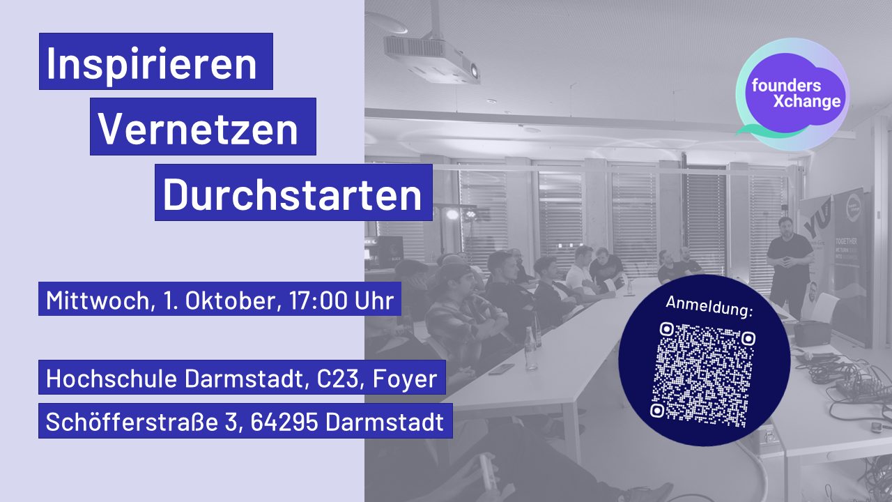 The next foundersXchange will take place on October 1 at Darmstadt University of Applied Sciences!This event is the perfect opportunity to connect with founders from the Rhine-Main region, share experiences, learn from each other – and maybe even find future co-founders. What challenges arise when founding a start-up, and how have others overcome them? What […]